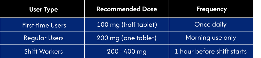 For new users, a lower dose such as Modalert 100 mg is generally recommended initially. It is advisable to take the tablet approximately one hour before engaging in activities that require sustained alertness.